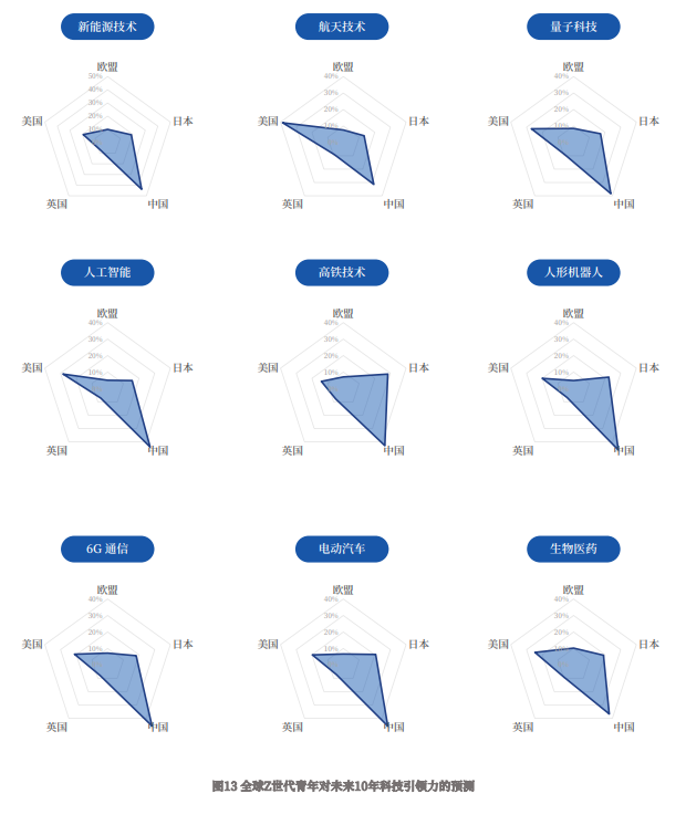 报告指出,全球Z世代认为,未来十年的科技发展将进入中美两个大国主导的时代。